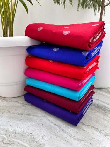 * Use the contrast plain blouse with elbow sleeves and zari borders.